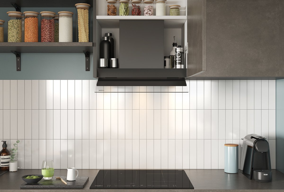 El extractor camuflado no desentona con la estética de la decoración y optimiza el espacio