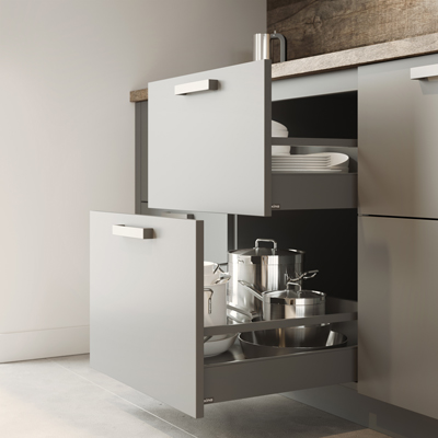 Outside, the saucepan maker is playing it chic, inside, it holds so many saucepans that the next ones will have to be put on a waiting list.